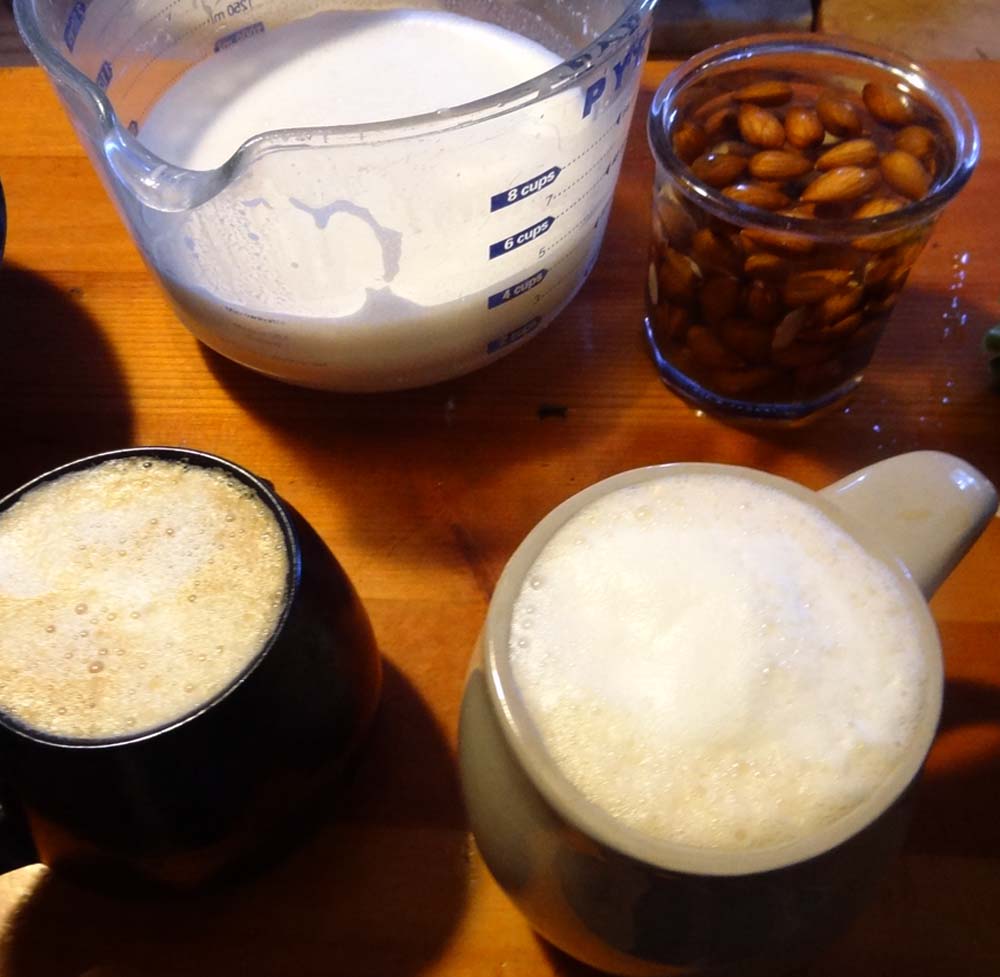 | soaked almonds, fresh almond milk, and my favorite way to enjoy: in a foamy cup of coffee |