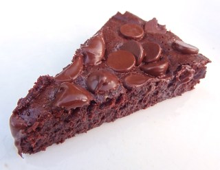 Voila! This cake is seriously amazing. It is not fluffy, but rather very dense and fudgy. No need for any embellishments. Sometimes I omit the peppermint oil and add cayenne, cinnamon, and dried cherries. Or I just make it plain. Sometimes I sprinkle more chocolate chips on top before baking it. Yum!