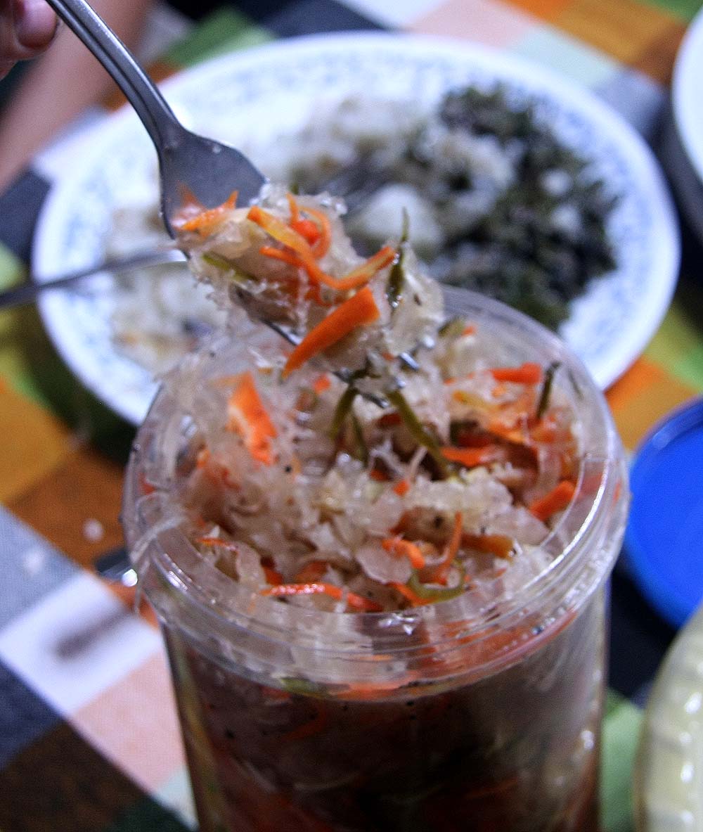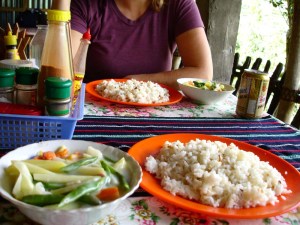 Atsara…a lifesaver Get yourself a jar of Atsara, and keep it in your pack. This sweet, tart relish is made from green papaya, ginger, garlic, onion and vinegar. It is delicious on everything, and when you find yourself at an eating establishment where there seem to be no options, you can ask for plain rice and a little chopped garlic and be reasonably satisfied with your meal of rice, atsara, soy sauce, and garlic. Sometimes vegetarian food can be a real challenge here…but this trick saved us multiple times.