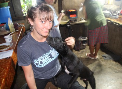 When we first arrived, we were told that the main topic of conversation around the house for the past month had been “what are we going to feed these people?”. Apparently Aunt Nida and her friends were completely mystified as to what to feed us. When we arrived, we told her, “anything you eat, just without meat or fish in it!” I think she thought we wouldn’t be eating noodles or rice, or bread, or… We thought it was hilarious and were glad to see the look of relief on all faces when they realized we were going to be easier to feed than originally thought. And Uncle Ed was happy to find a beer drinking partner in me. We ended up eating so well that I gained weight while we were there. Culinary highlights include: Sitawu (green beans stewed in fresh coconut milk), Heart of Banana flower croquettes and salads, fresh heart of palm dishes, a delicious corn soup, sauteed pumpkin leaves, sticky rice dumplings, local coffee from the mountains, black mountain rice, stewed jackfruit, and vegetarian lumpia. I have recipes!