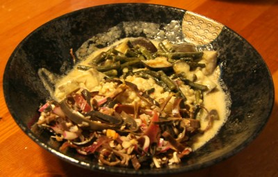 At home in California, when I decide to make this dish I usually do a combo of sitawu (long green beans) and eggplant. We are lucky in San Diego to have no less than 4 huge Philippino supermarkets nearby, so I have no trouble finding most of the ingredients I need, but if you can’t get long beans then regular beans will do just fine. I also always try to find the coconut cream with the highest fat content…cause I like it that way.