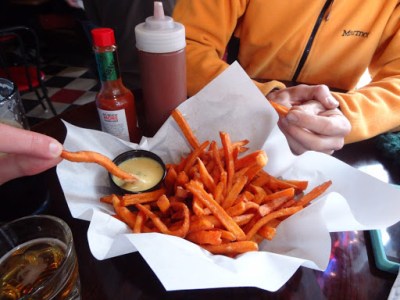 Normally, when we visit this place, we drive to the top of the Noble Canyon trail head. The dog and I hike the easy 4-5 mile loop that takes you around Big Laguna Lake and then drive to the bottom of the trail head where the rest of the gang has ridden down on mountain bikes. It’s a win-win situation for all. This time, however, we simply went on the hike, and then popped over to Alpine for a beer and some scrumptious sweet potato fries, served with a myriad of dipping sauces. Be sure to ask for the chipotle mayo that they hide in the fridge. For beer, I can recommend the Mandarin Nectar, a slightly sweet ale, and the Captain Stout, which tasted chocolat-ey…