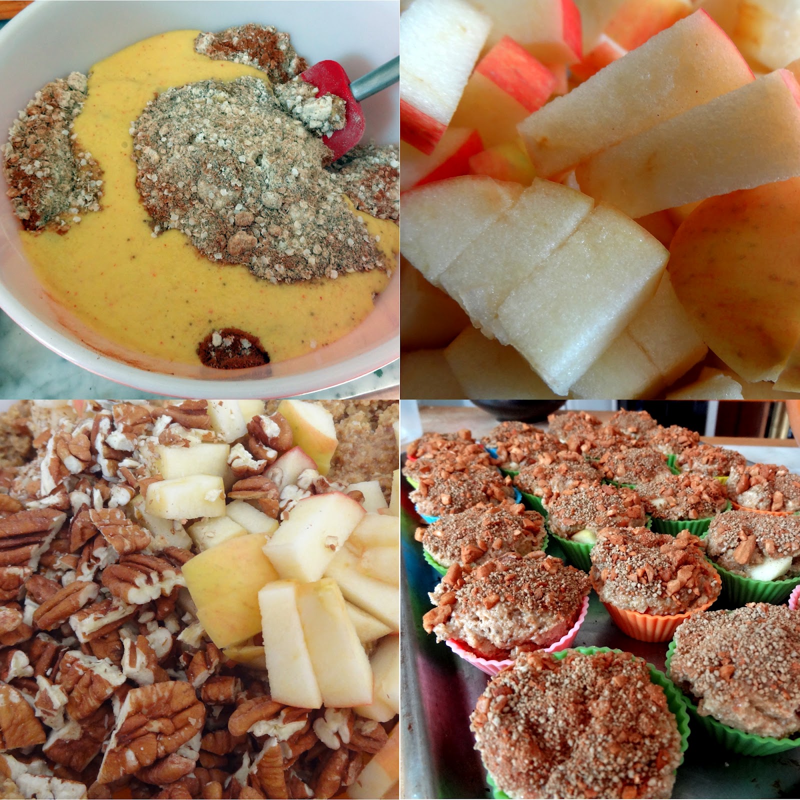 In a separate bowl, combine the flax meal through the cloves. Add the apple puree and mix until just combined. Add the chopped apple and walnuts and combine.