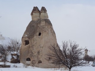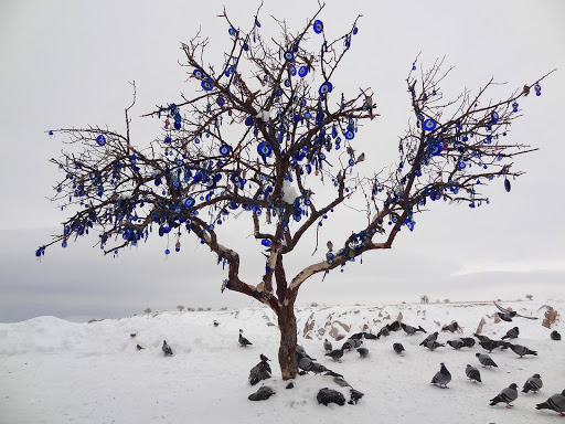 Ah, I am living vicariously through your account! I remember the tree with all the glass evil eyes! And the pigeon holes in the tufa near by. How cool it must have been to see the fairy chimneys with a blanket of snow on top! The cave hotels are wonderful. All such good stuff!