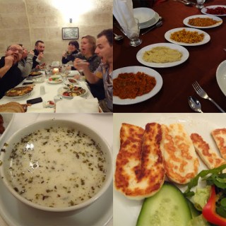 We did have one tasty meal while in Capadoccia, with two likeminded Turkish couples we befriended on the bus into town. One evening, we all met at a restaurant and enjoyed a variety of mezes (small dishes). Top it off with Capadoccian wine (this area is like the Napavalley of Turkey) and lively conversation; the evening ended up being quite memorable. The best part would have to be the making of new friends, ones that we have every intention of keeping. And the food was actually pretty good…