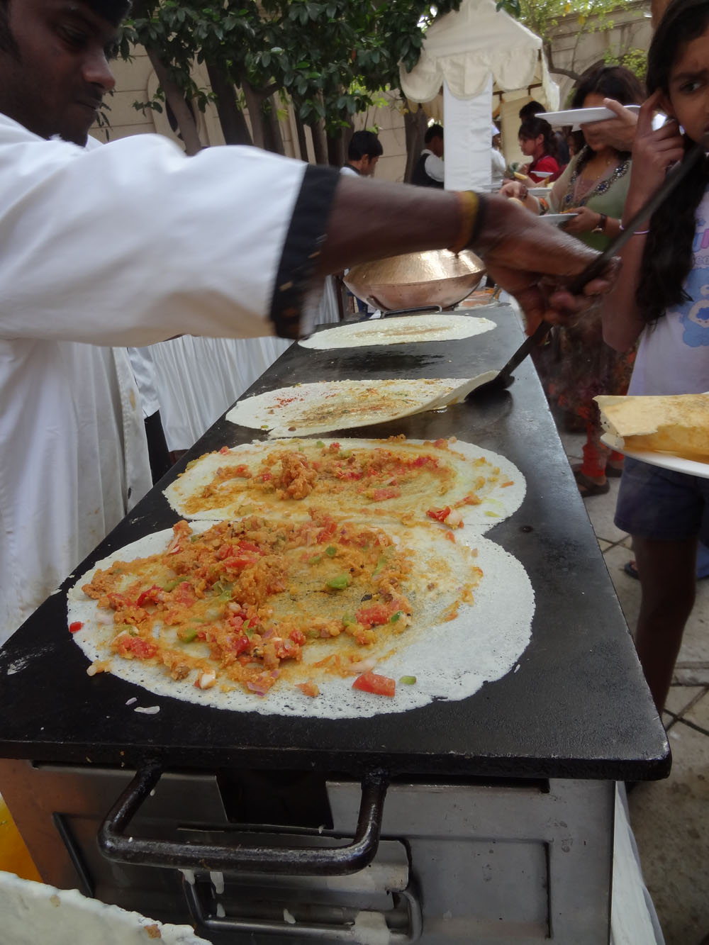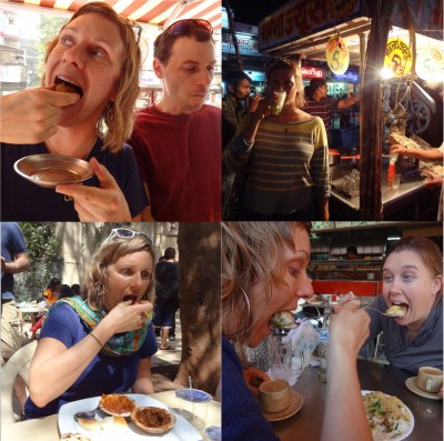 I don’t even know where to start. I’m loving the dosa of course. If you are not familiar with this delicacy, it is a fermented rice and bean flour crepe filled with deliciousness, eaten with the hands. We have had corner store dosa, fancy catered dosa, street food dosa, and restaurant dosa. Happy to report that the hands-down best version yet would be the street food dosa. It was so flippin good that I will tell you how to go there in the event you are in Mumbai, near the train station and the post office, and not afraid to eat street food while standing on a noisy road. Slathered with ghee, loaded up with potatoes, onions, tomatoes and spices and served with sambar and coconut chutney, I actually spent 10 minutes after we finished eating directing other foreigners straight to the stall so that they could share in my culinary delight. Here is the approximate location on the map for your reference. It’s on Saint George Road, just outside the train station by the post office. Eat at Tamil Nadu Foods, for a culinary taste explosion. See the locals also enjoying the delights? Always a good sign.