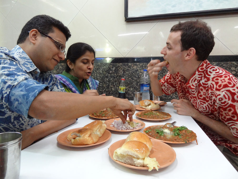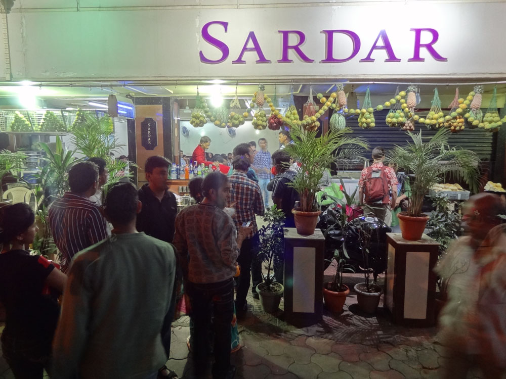 Last night we met up with some old friends of Ryan’s from his Mumbai days. They suggested that we eat at Sardar, the most famous joint in the city for this ubiquitous dish. Even though we already had a plate of the stuff at Chowpatti Beach that afternoon (good, but not as good as Sardar), we readily agreed, as A) we are quite keen on the dish, and B) how do you pass up anything that comes from an eatery universally agreed upon as “famous” by the local population? The place opens at 7pm, and we arrived at 7:05. All the tables already full, we were second in line of the queue that formed immediately, curving around the corner and down the street.