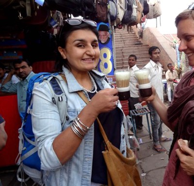 I drank a lot of chai in India. Due to Ryan’s aversion to caffeine, each time we were served chai I’d end up drinking mine and then his as well. Hotel chai, street chai, house chai, restaurant chai, all were served up to us on a multiple times a day basis. While always similar, and therefore good, some were better than others. Chai is best when made with freshly ground spices and ginger. It is still good on the street, made with chai masala powder, but much better the fresh way. You’ll need a mortar and pestle, or a small coffee grinder for this.