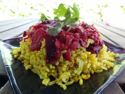 This is a tasty combination we enjoyed recently, when I had a fridge drawer full of beets and a hankering for an aromatic, flavored rice dish. Remembering that lemons and beets pair nicely, I decided it would be worth a try.