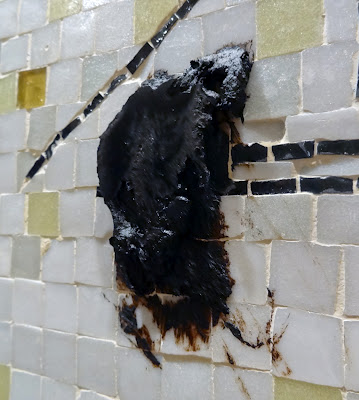 I have been called in to restore/repair this groovy mid-century mosaic by Joe Young. It is installed over the bar in a gorgeous home that is an architectural gem in its own right. The mosaic dates to 1958. Here is a link to an article about the artist.