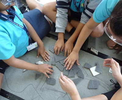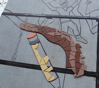 One thing that really works for this crowd: tell them that crazy paving is like playing Tetris with triangles. You know that game? OIS students do, and it works. It’s easy to make them laugh and I am learning how to make the difficult process of learning mosaic fun for them with jokes and other playful tactics.
