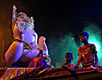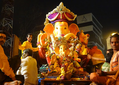 Last Thursday was the final day for Ganpati. I went down to the temple across the street to witness the immersion of the Ganesh idols. There is a large pool (like a big swimming pool) connected to the temple designed specifically for this ceremony, in which people come with their idols (from very small to very large) to sink them into the water, thus sending Ganesh back to his home after a brief visit in the homes of those who participate in the ritual. One great thing about India is that everyone WANTS me to take their picture, unlike some places, where I practically have to pay people to allow me to do so. Enjoy some fun shots of the evening’s festivities…