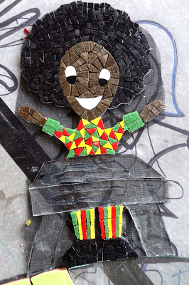 Another surprising empowering tool is the initiation rite of the band-aid worthy cut. These kids, like my students in Ghana and the US, take the inevitable cuts like they are badges into the cult of the true mosaic artist. I think it makes them feel tough. And it’s not like it gets better as you gain experience. Not a day goes by when I don’t get some kind of cut on one of my appendages. Today I kicked a piece of glass and don’t think I’ll be able to wear closed toe shoes for a while. Last week I came home one night with band-aids on 4 different fingers.