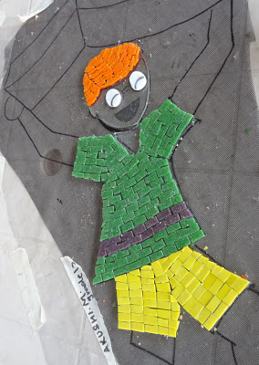 My strategy goes as such: show the kids a section of mosaic done wrong. Ask why it is not up to our (new and current) standards. They always know what is not good. Usually it is because of too many gaps, no gaps at all, wrong shaped pieces (triangle instead of rectangle), unclean edges, or too much/too little glue. I then equip them with a pair of safety glasses and the proper tools for removing all errant tesserae and dried glue. And then I ask them to fix it. And you know what? Round two is always so much nicer. It is great to watch the empowerment that allowing students to rip up bad work and fix it does. It is part of the process, however annoying or delaying it can be.