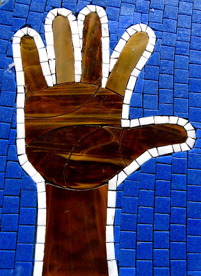 Work on the mosaic is awesome. While I still have a hardworking and loyal crew of middle school and high school kids (and even a few younger ones!), we have grown our team to include teachers, staff members and school moms (the dads were invited but none showed up, I guess they have to support those families somehow). These days, I work throughout the day with these individuals to get a little bit more done with each session.
