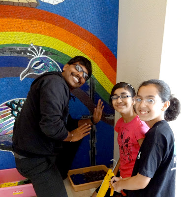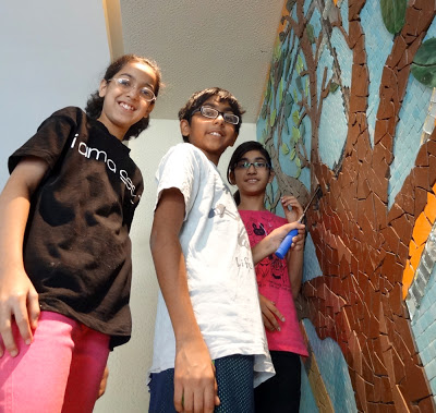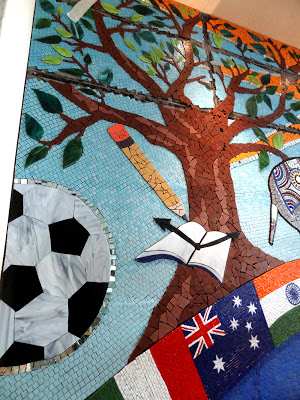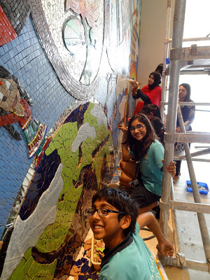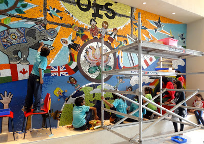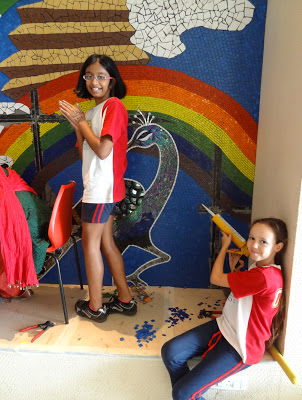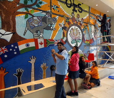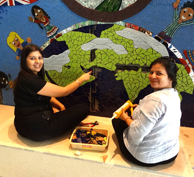 I love my job here in Mumbai. I am sad that it is coming to a close and hope someone else wants me to do the same for their international school, anywhere in the world. I am just putting this out there into the subether. If you or someone you know works at an international school or other institution would like me to come and consult on a community (it started out as student-driven but has evolved into so much more) collaborative mosaic mural workshop, just let me know and I will send along a proposal to get the ball rolling. This is a magical experience each and every time I do it. This is my seventh student driven mosaic project and I hope to do it a hundred more times. (I also do custom work. Just contact me.)