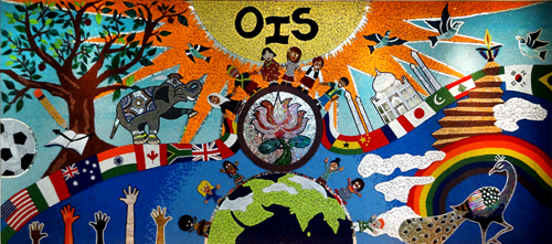What have I been doing with my days? I am here working on a large scale student/community driven mosaic mural at an international school in Northern Mumbai. I spend most of my time (well, I did, but now we are almost finished!) at the school working on the project. Visit my art blog (link is in the side bar) for lots of details and pics. Here is a pic of the almost complete piece: