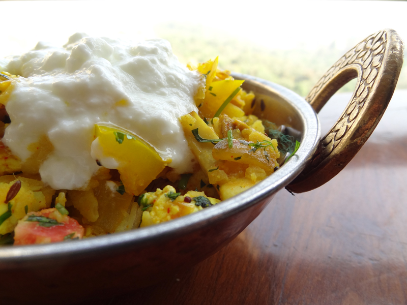 To serve: garnish with a small handful of chopped cilantro and a dollop of fresh yogurt.