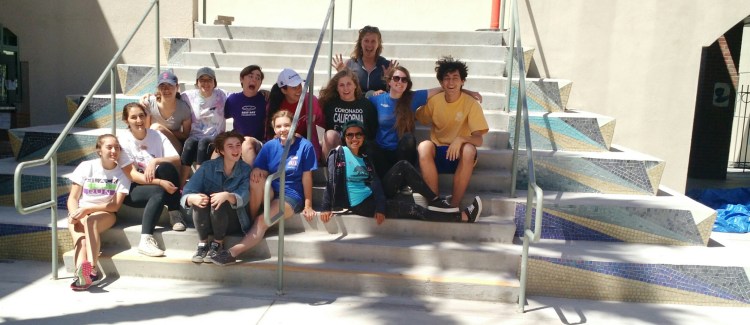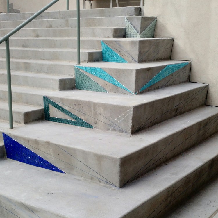 I’ve been a busy bee. In the spring of 2016, I was hired Coronado High School to do one more student driven installation with the art classes. We completed our staircase masterpiece, “Jazz Hands” in May of 2016. Have a look at how great it turned out!