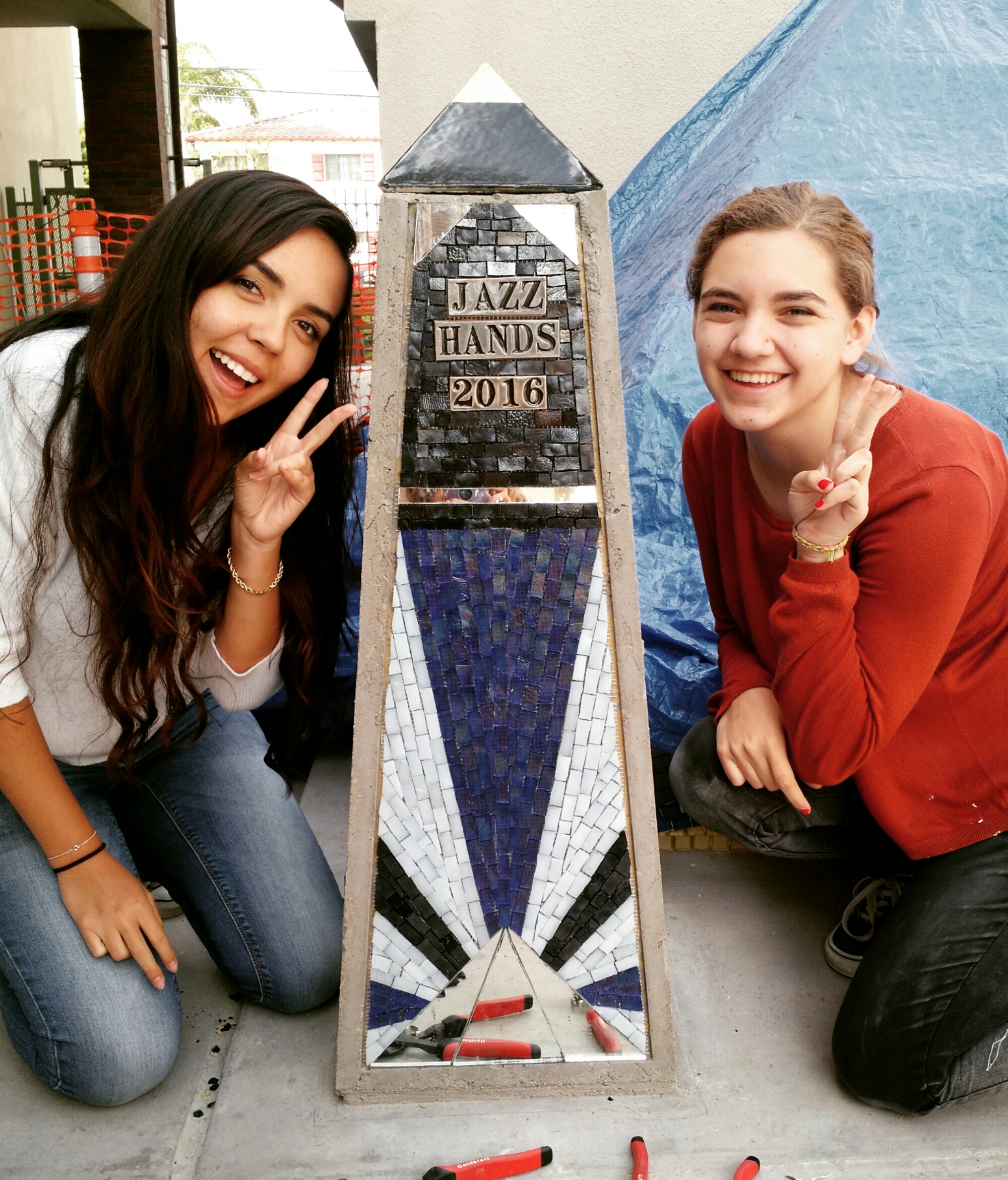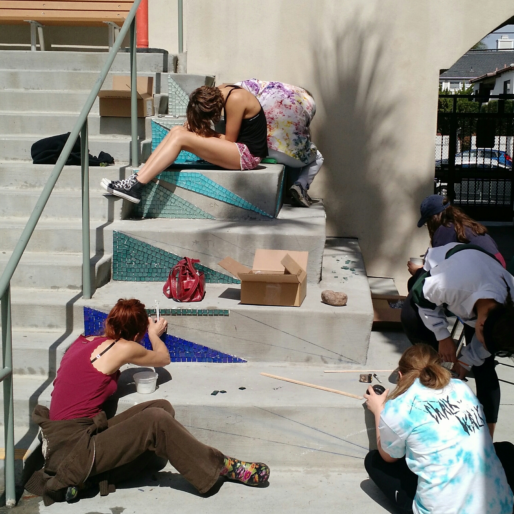 I’ve been a busy bee. In the spring of 2016, I was hired Coronado High School to do one more student driven installation with the art classes. We completed our staircase masterpiece, “Jazz Hands” in May of 2016. Have a look at how great it turned out!