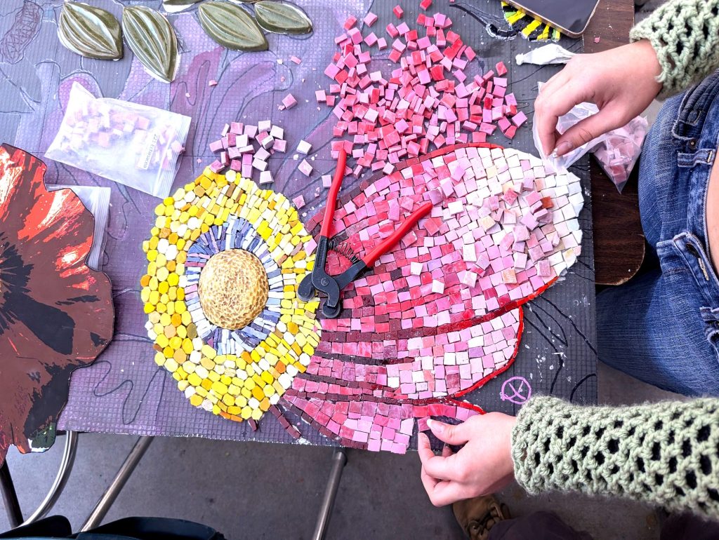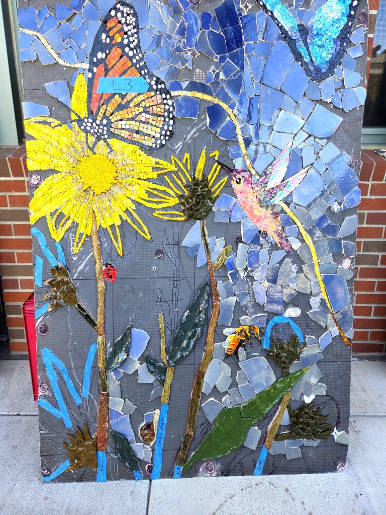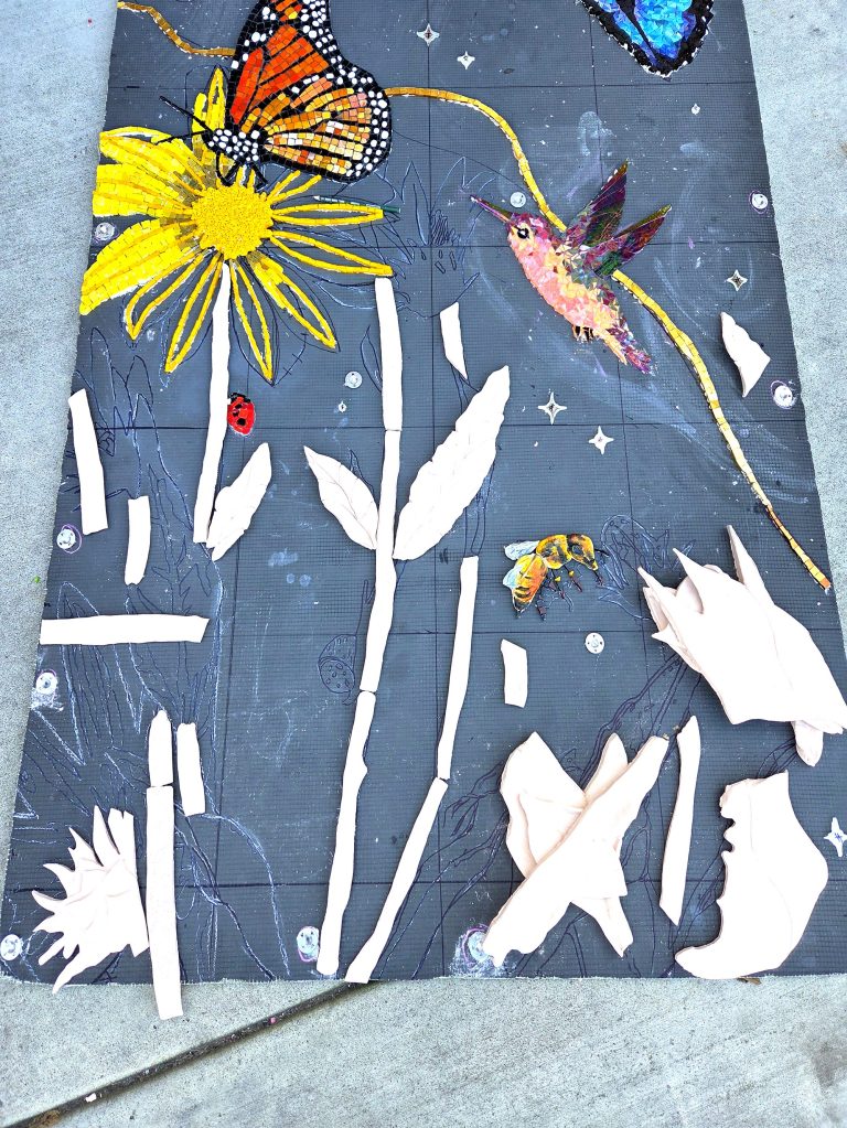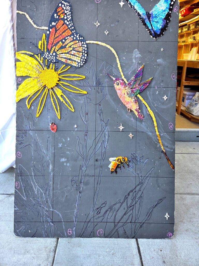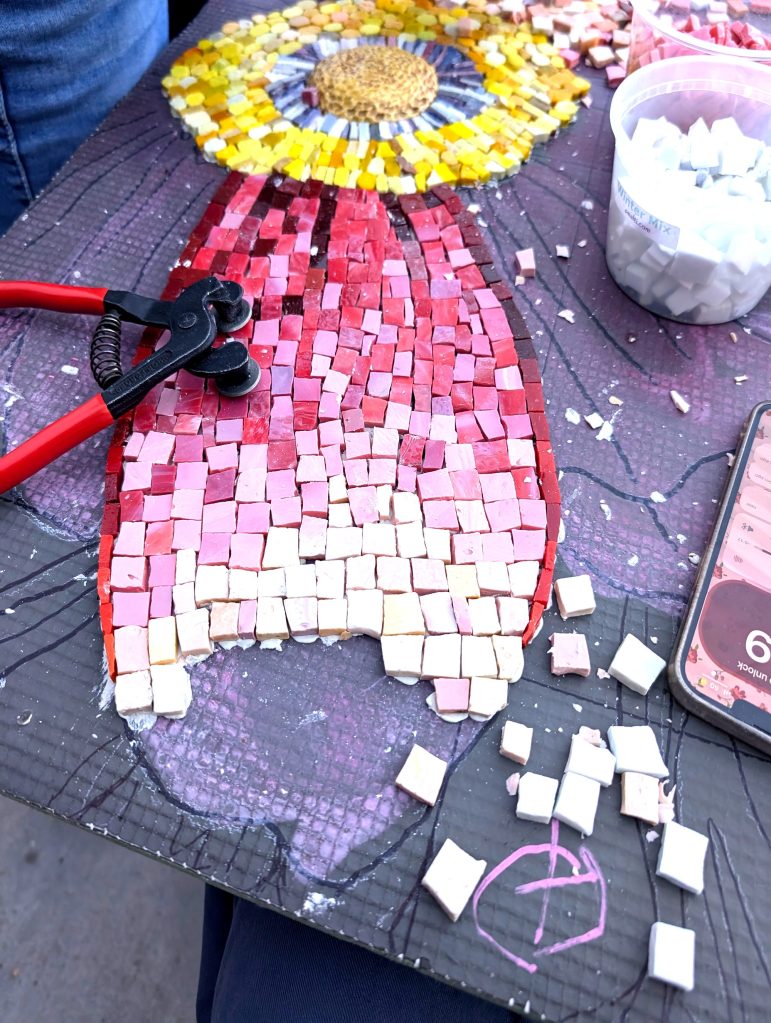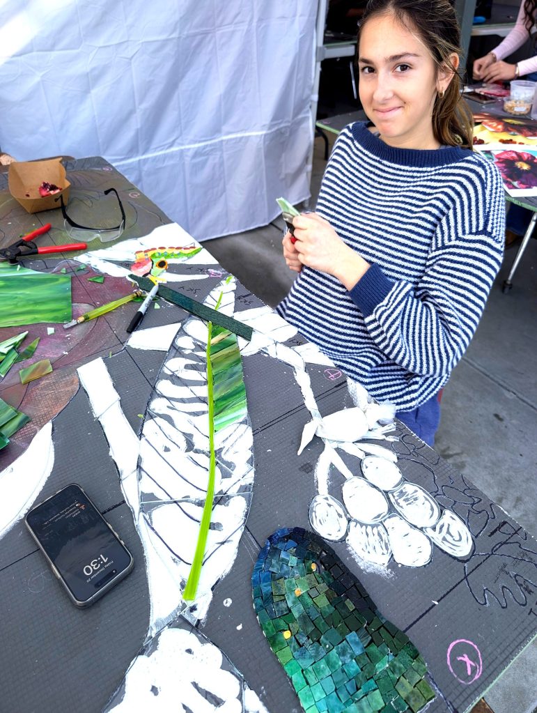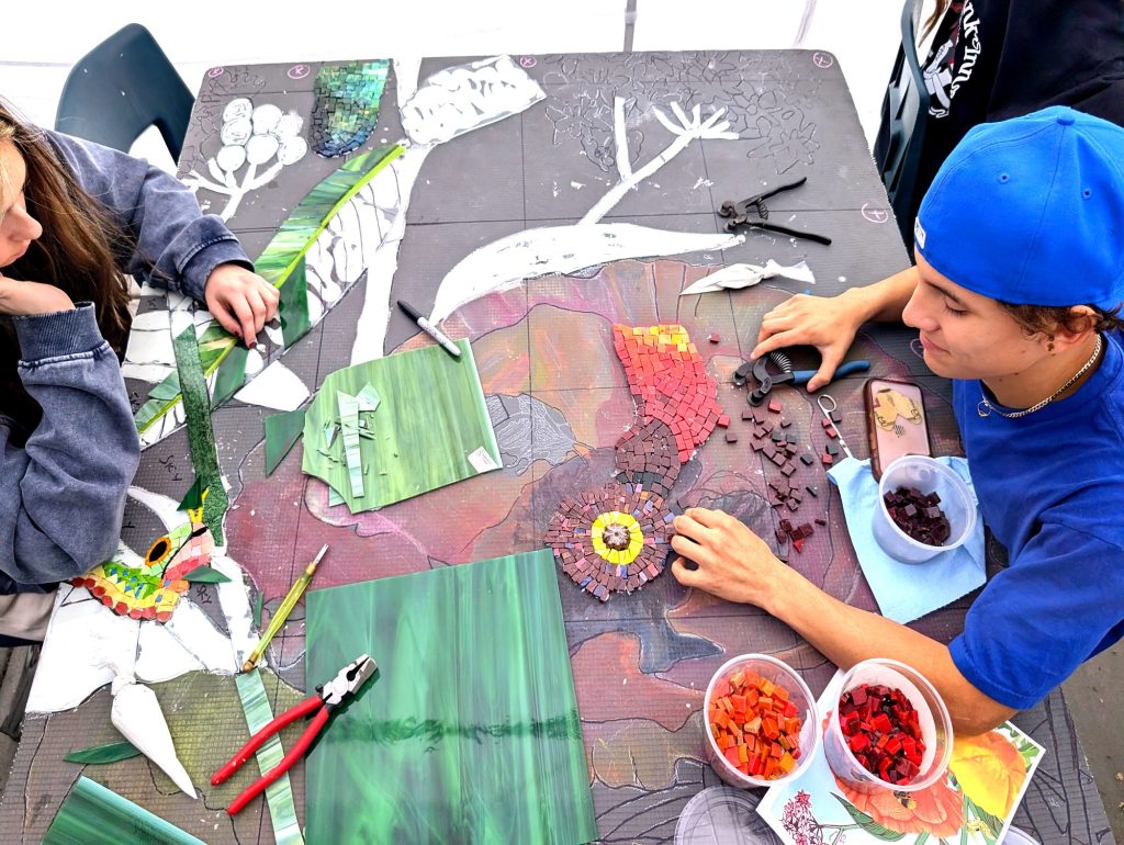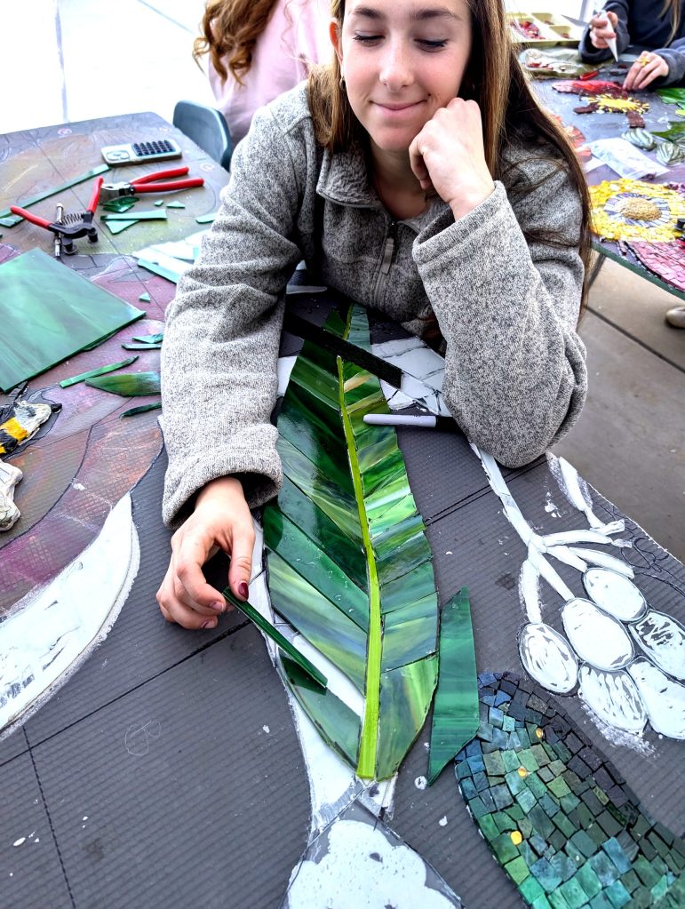 This is our biggest, most epic and most public collaboration to date! Created entirely by Coronado High School Art Students in 2024/2025, we collaborated across multiple departments to create this beautiful 24 foot high mural on the side of the School building at 6th and D Ave. This mosaic is multi-media, including Mexican Smalti, hand made ceramic tile (made by students) and other elements, as well as stained glass. I could go on, but the piece speaks for itself!