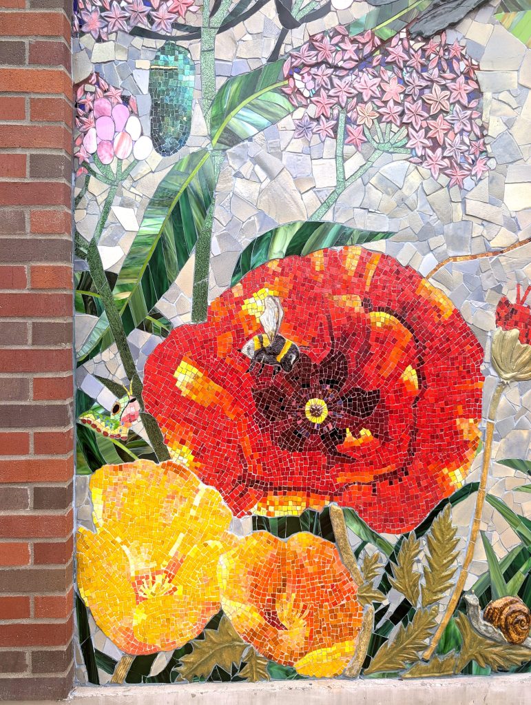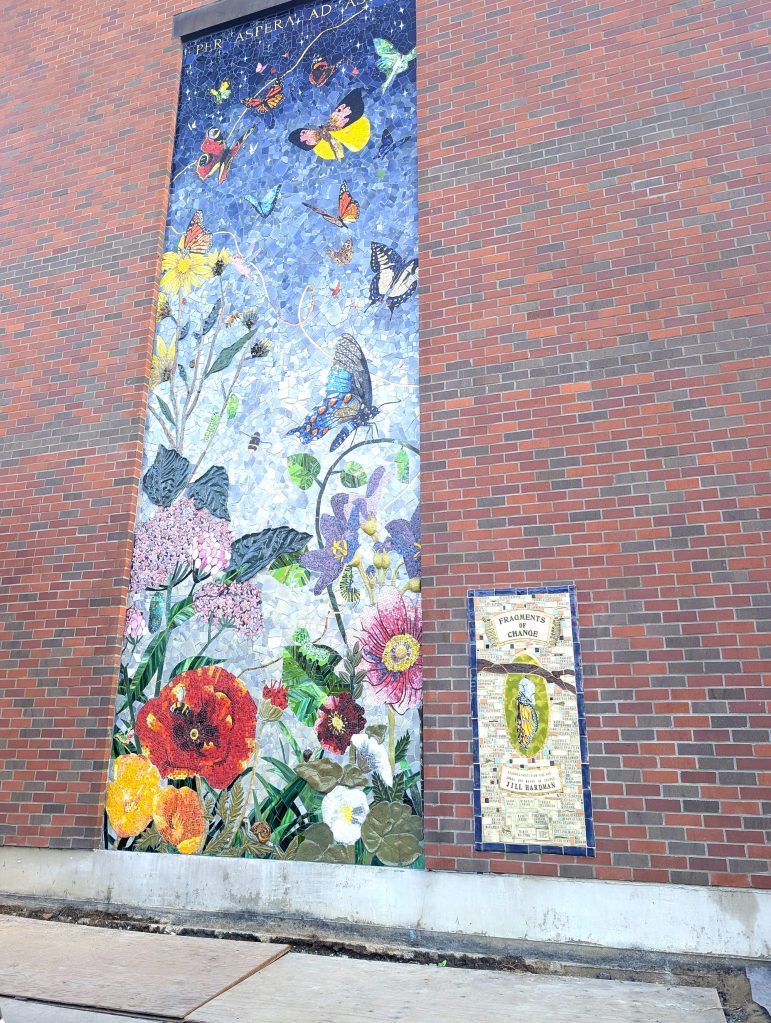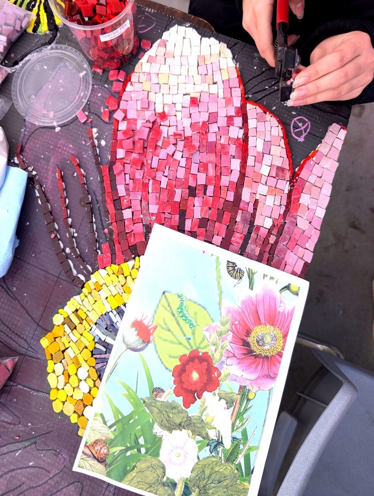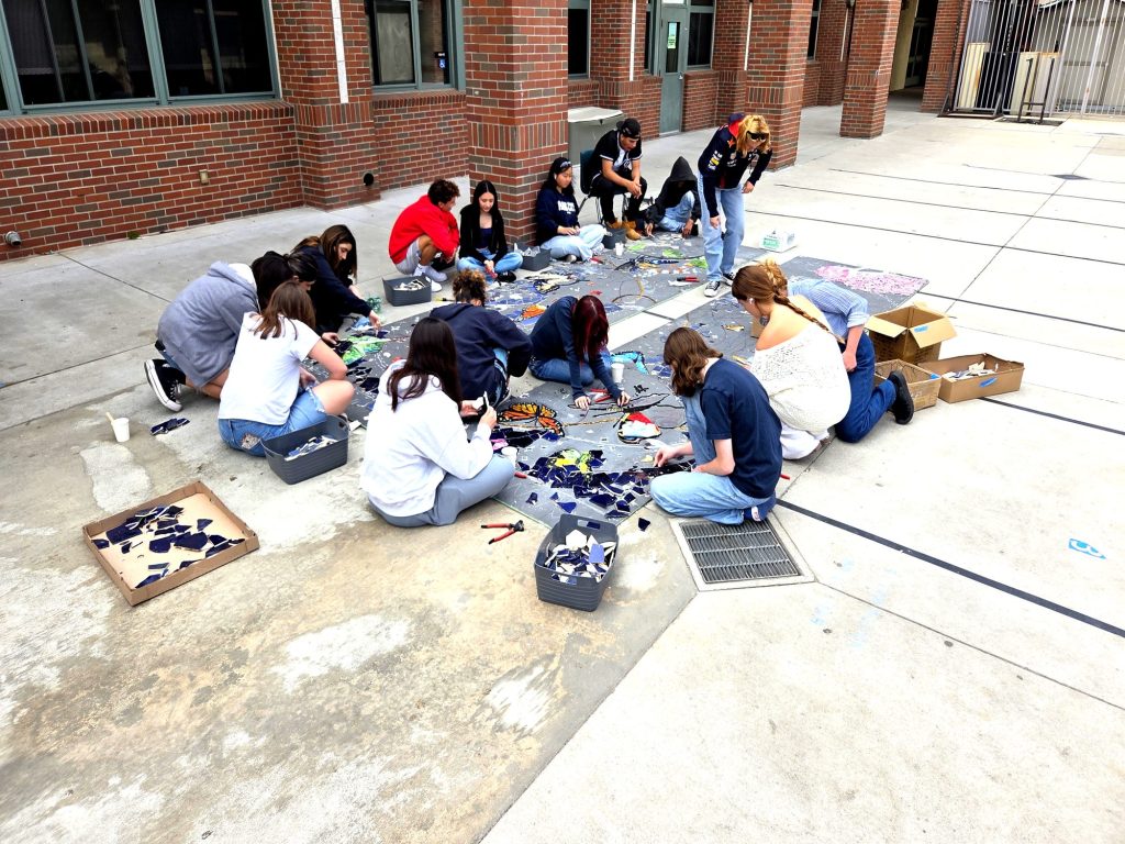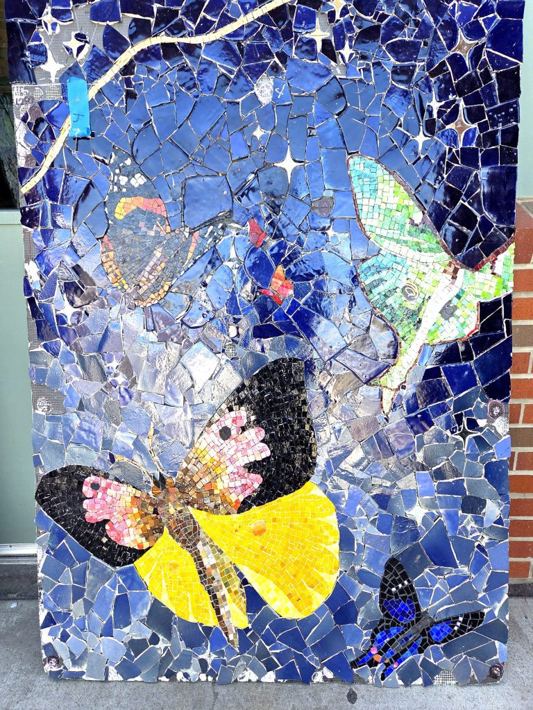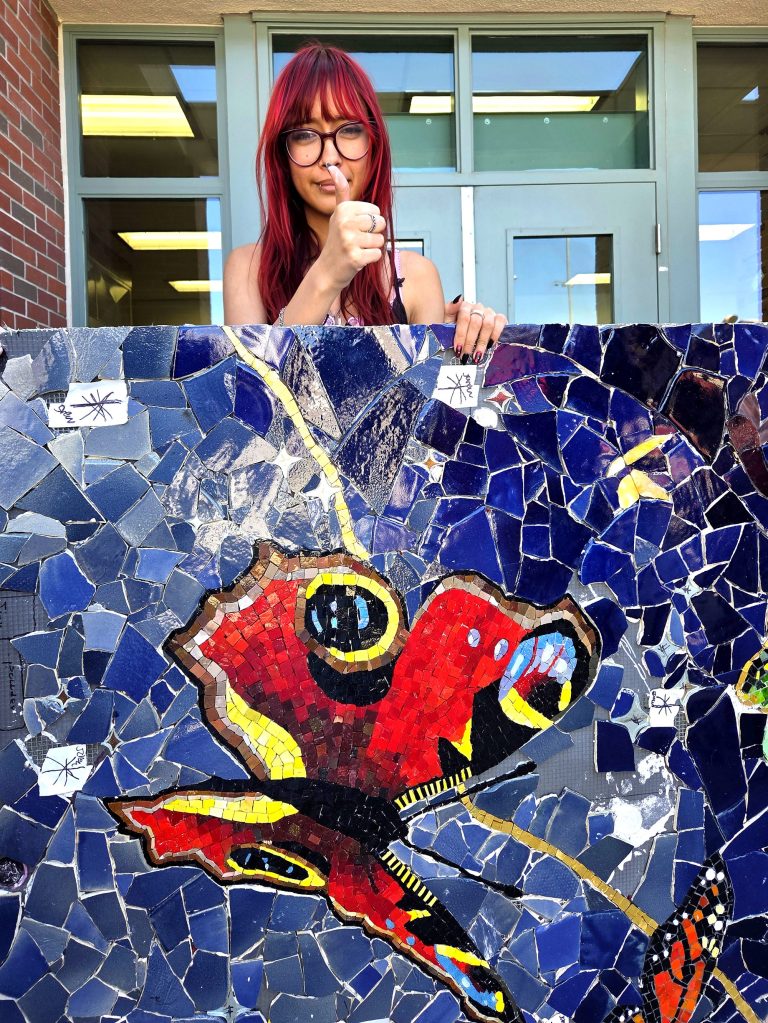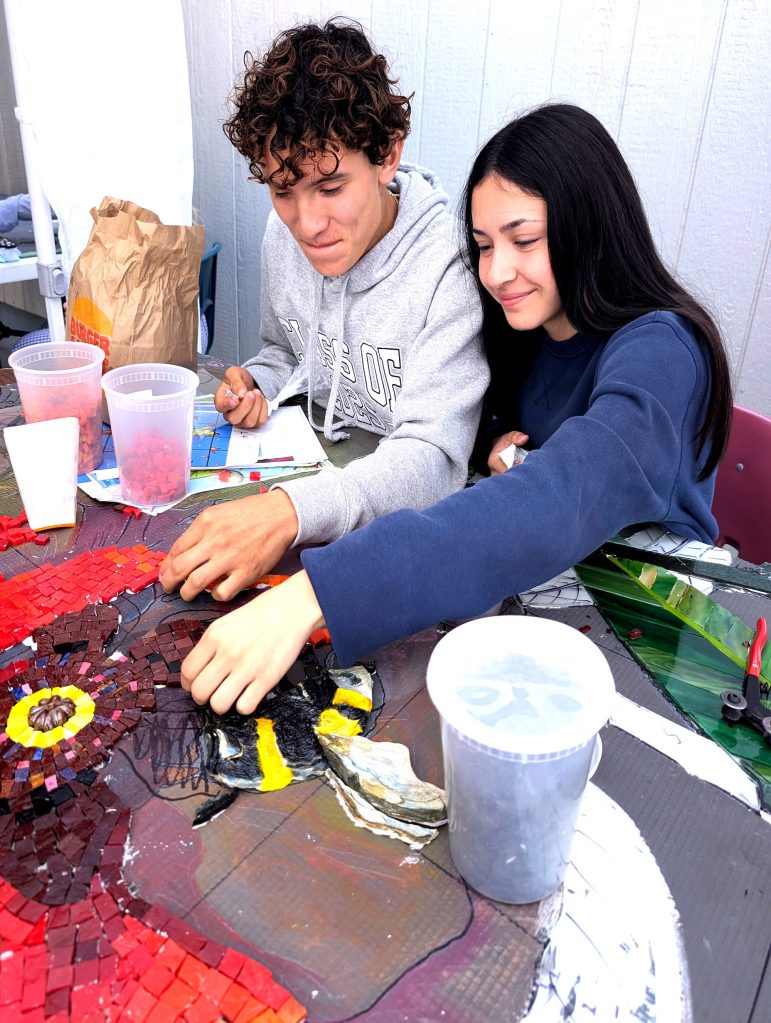 This is our biggest, most epic and most public collaboration to date! Created entirely by Coronado High School Art Students in 2024/2025, we collaborated across multiple departments to create this beautiful 24 foot high mural on the side of the School building at 6th and D Ave. This mosaic is multi-media, including Mexican Smalti, hand made ceramic tile (made by students) and other elements, as well as stained glass. I could go on, but the piece speaks for itself!