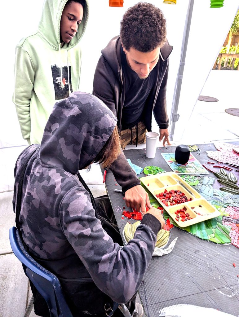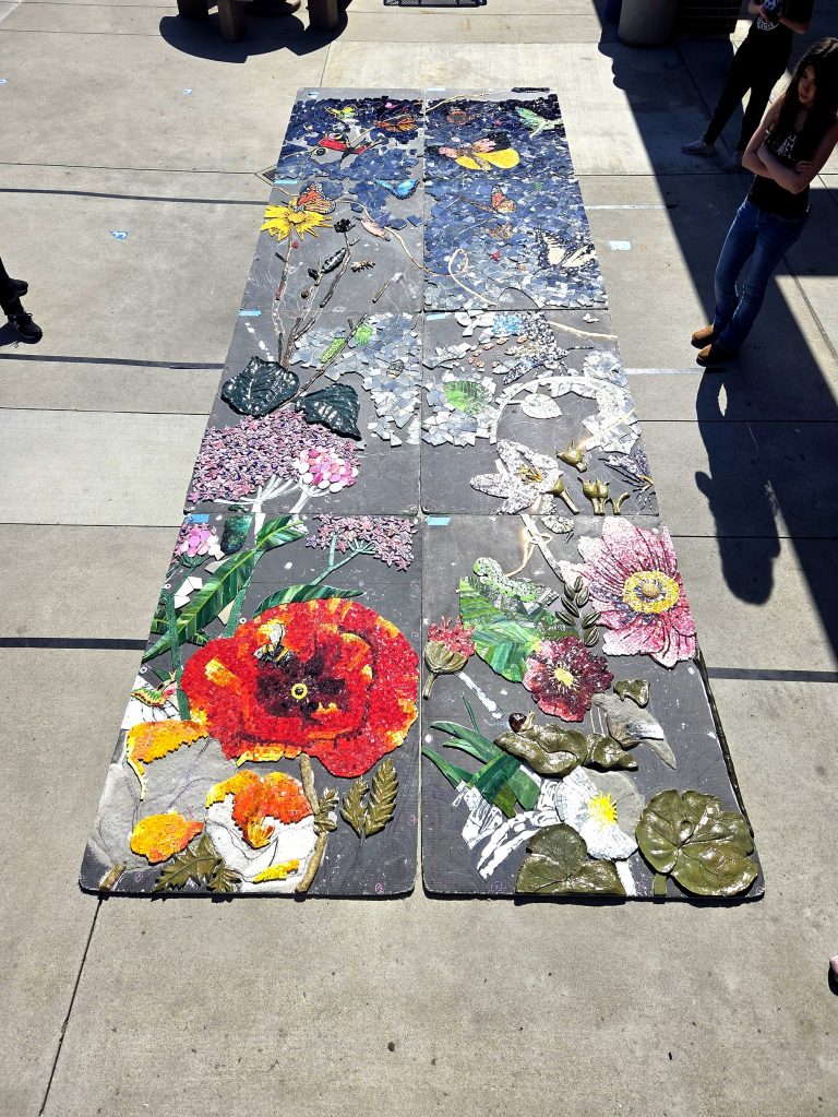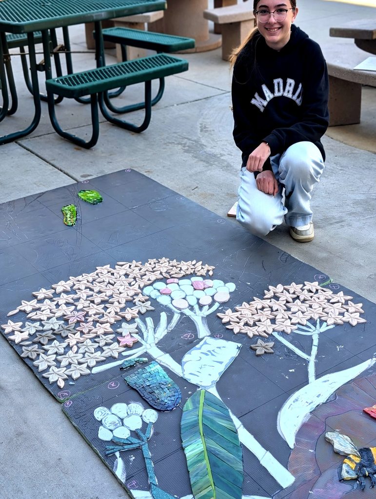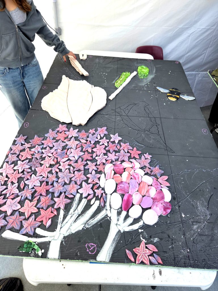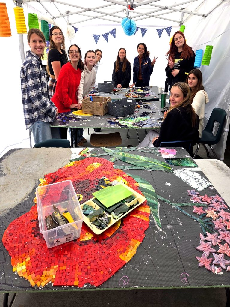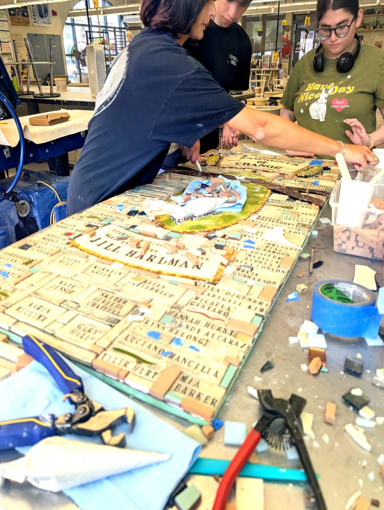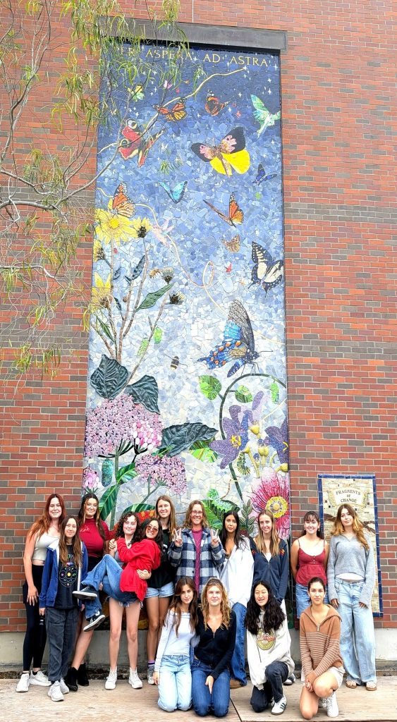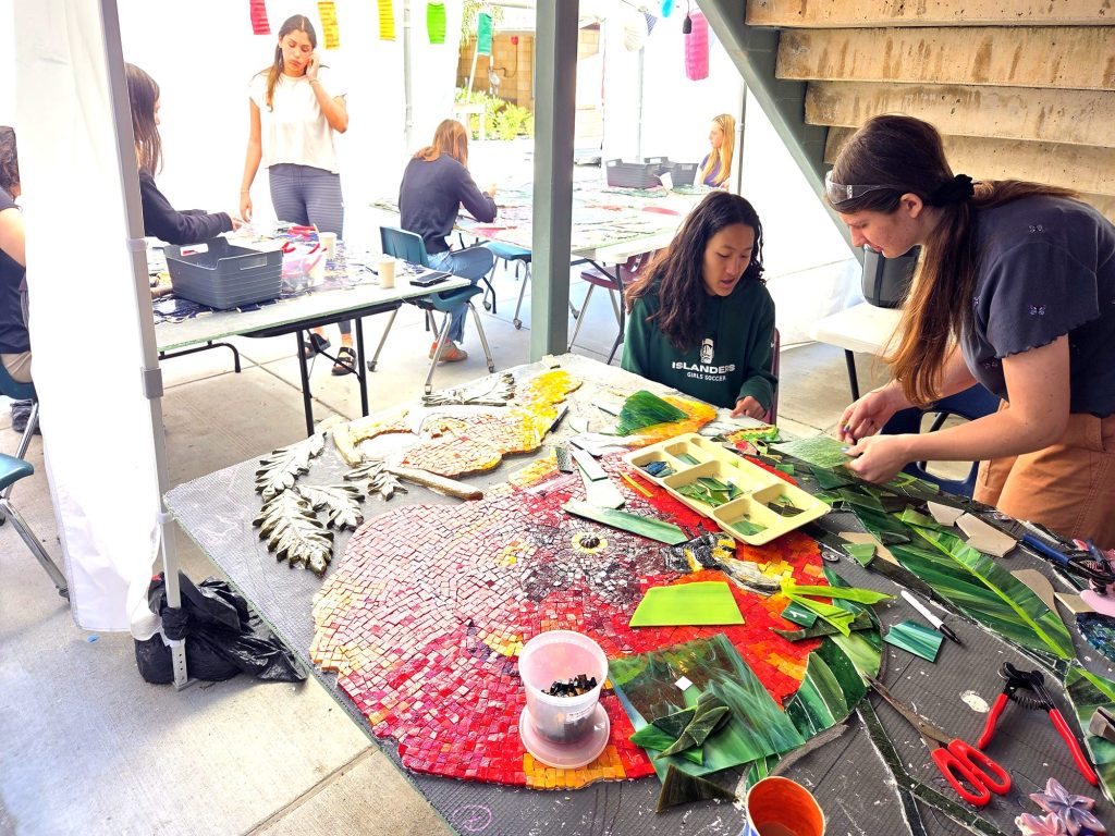 This is our biggest, most epic and most public collaboration to date! Created entirely by Coronado High School Art Students in 2024/2025, we collaborated across multiple departments to create this beautiful 24 foot high mural on the side of the School building at 6th and D Ave. This mosaic is multi-media, including Mexican Smalti, hand made ceramic tile (made by students) and other elements, as well as stained glass. I could go on, but the piece speaks for itself!