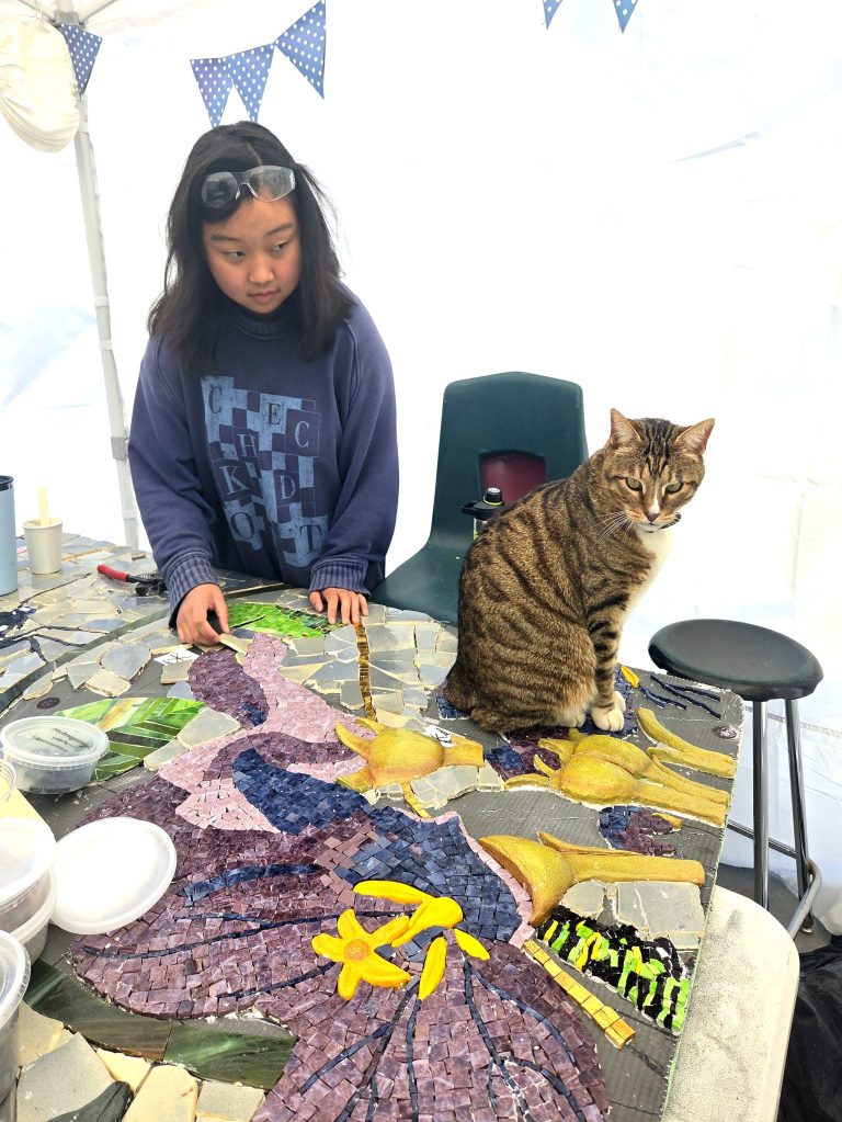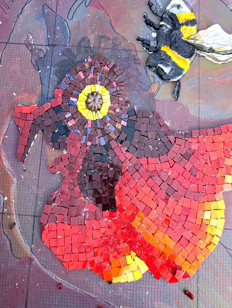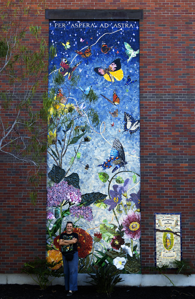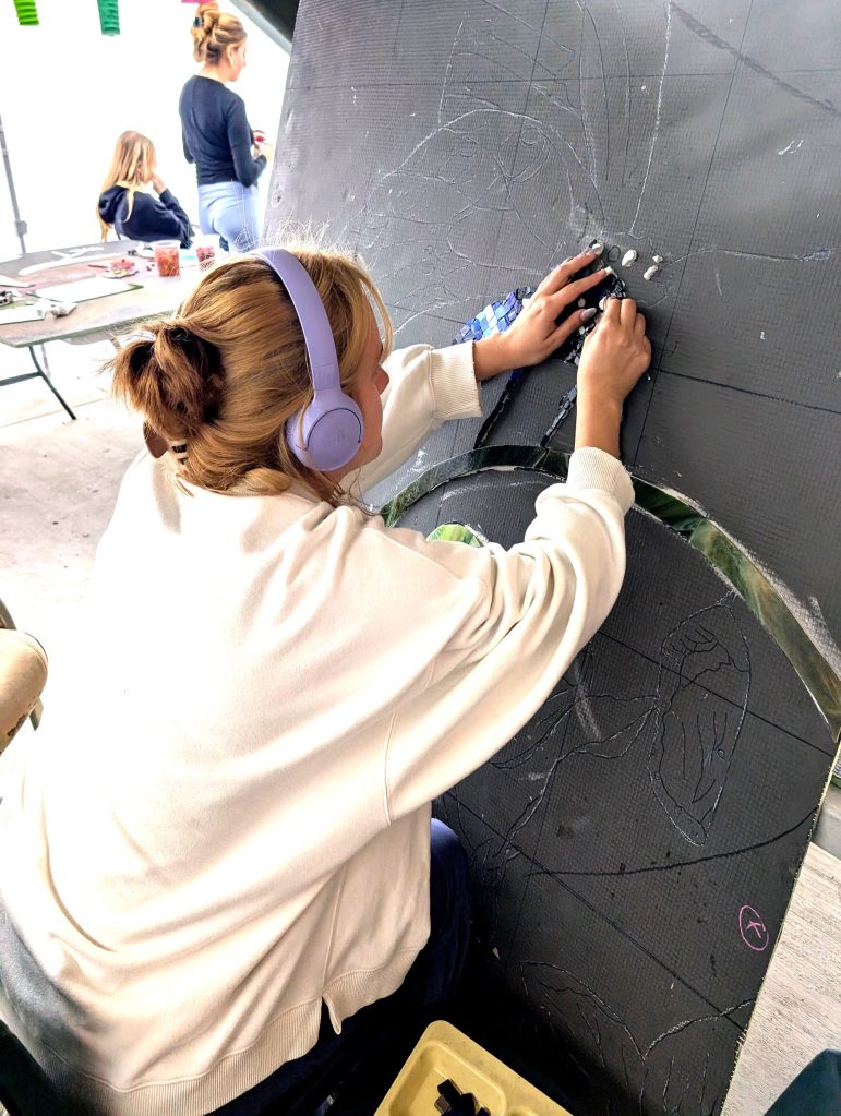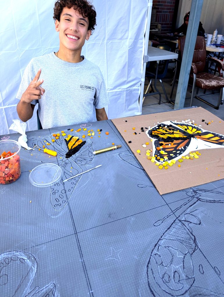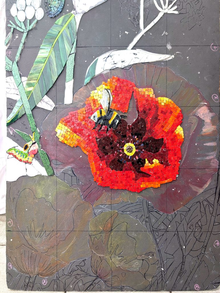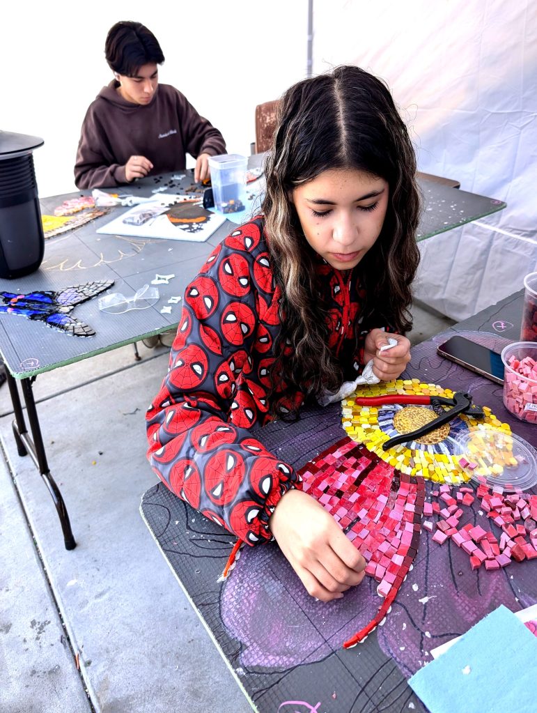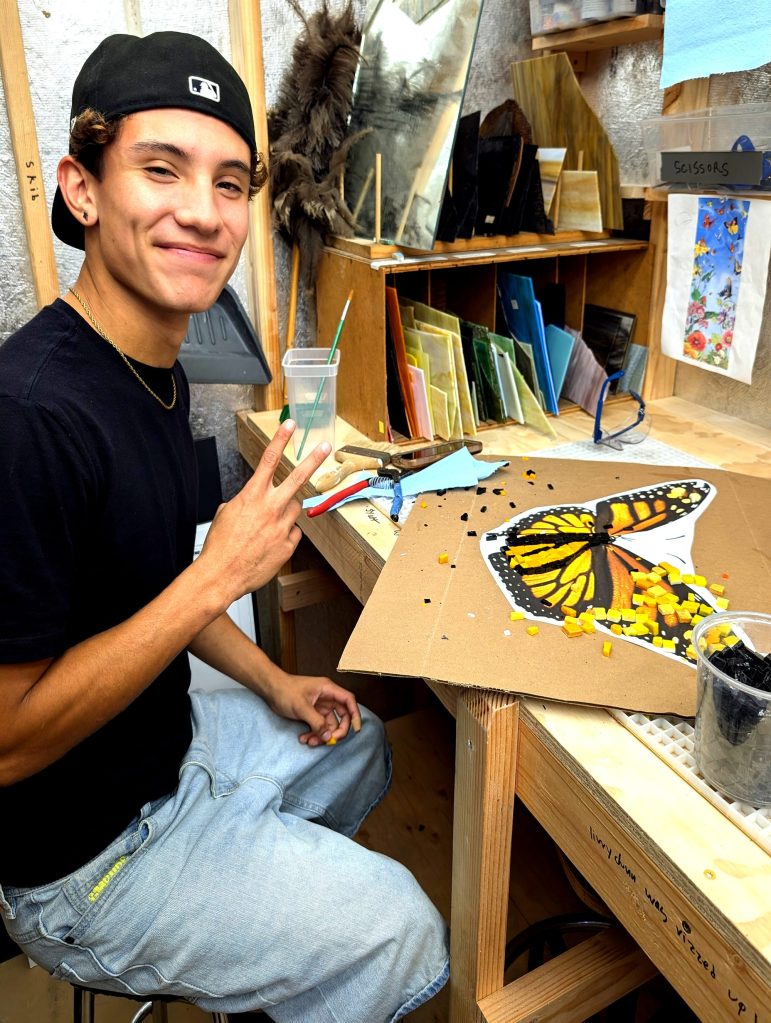 This is our biggest, most epic and most public collaboration to date! Created entirely by Coronado High School Art Students in 2024/2025, we collaborated across multiple departments to create this beautiful 24 foot high mural on the side of the School building at 6th and D Ave. This mosaic is multi-media, including Mexican Smalti, hand made ceramic tile (made by students) and other elements, as well as stained glass. I could go on, but the piece speaks for itself!