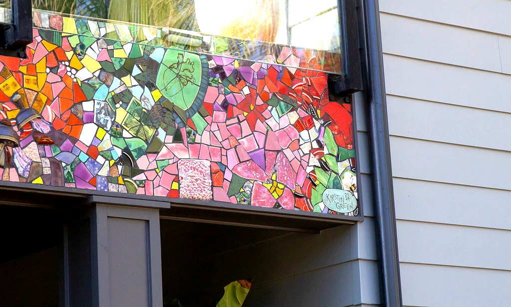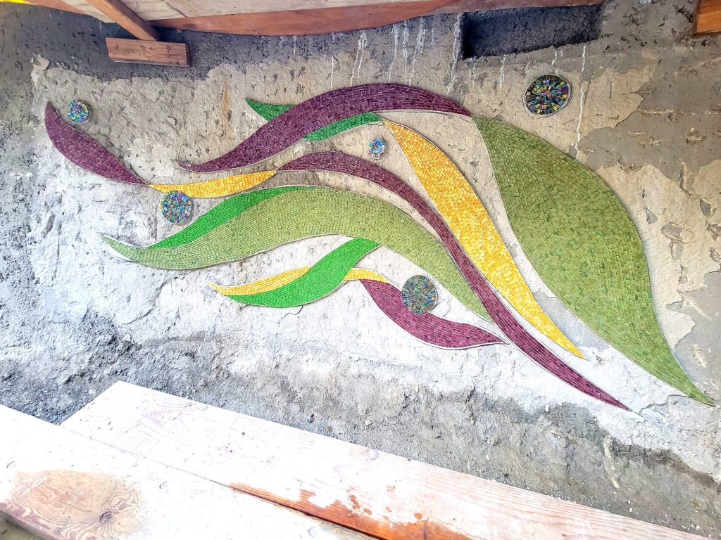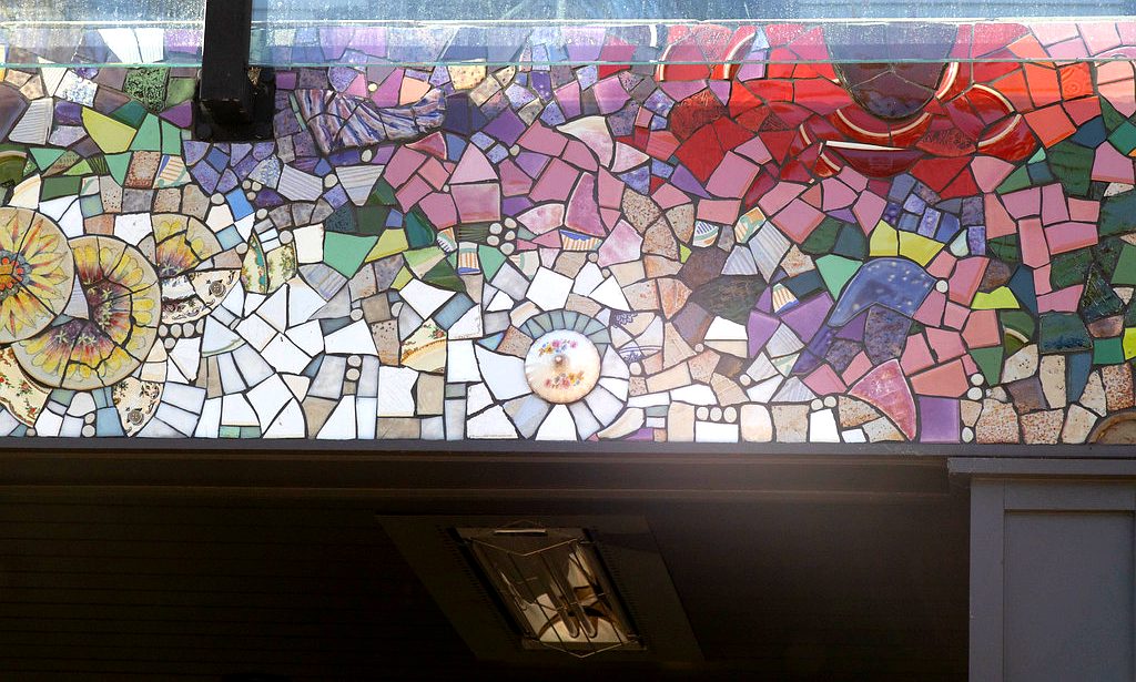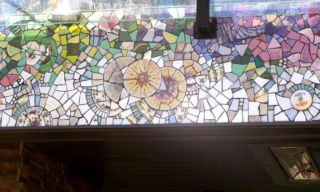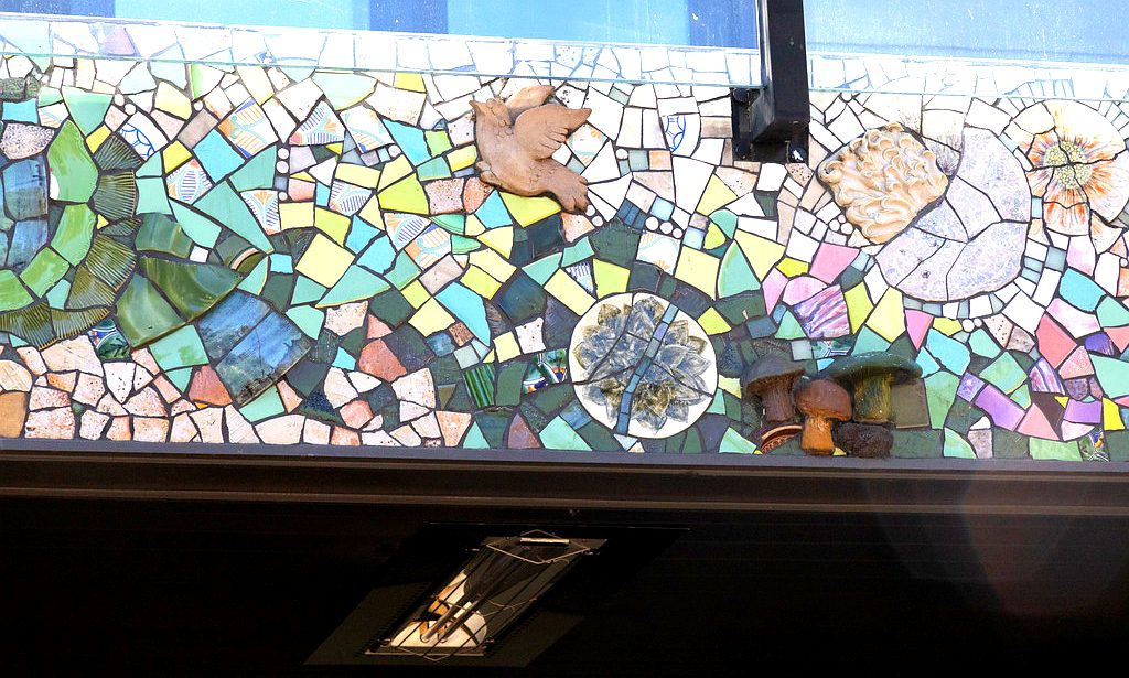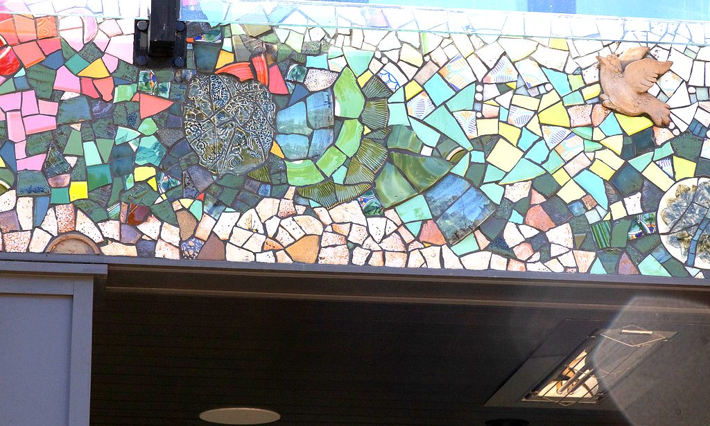 This pair of murals is made from Italian Smalti. These flank the public restrooms in a park in my home town.