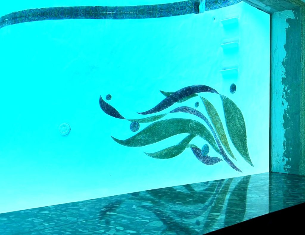 This mosaic is viewed from an aquarium window under water, in a pool. One day, I will get better pics of this job!