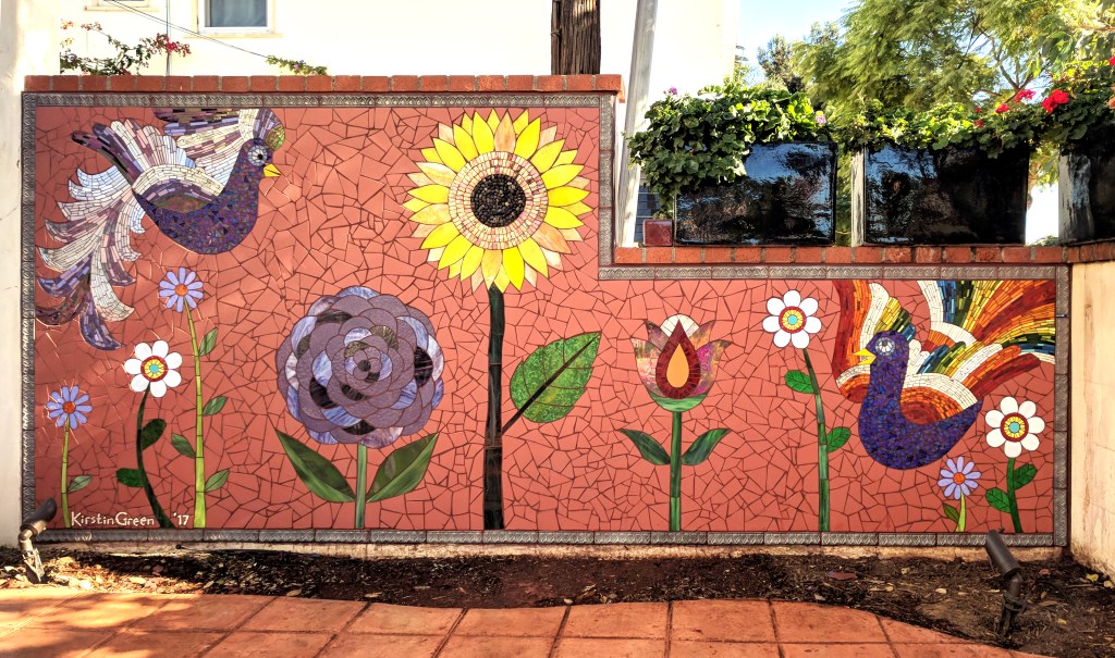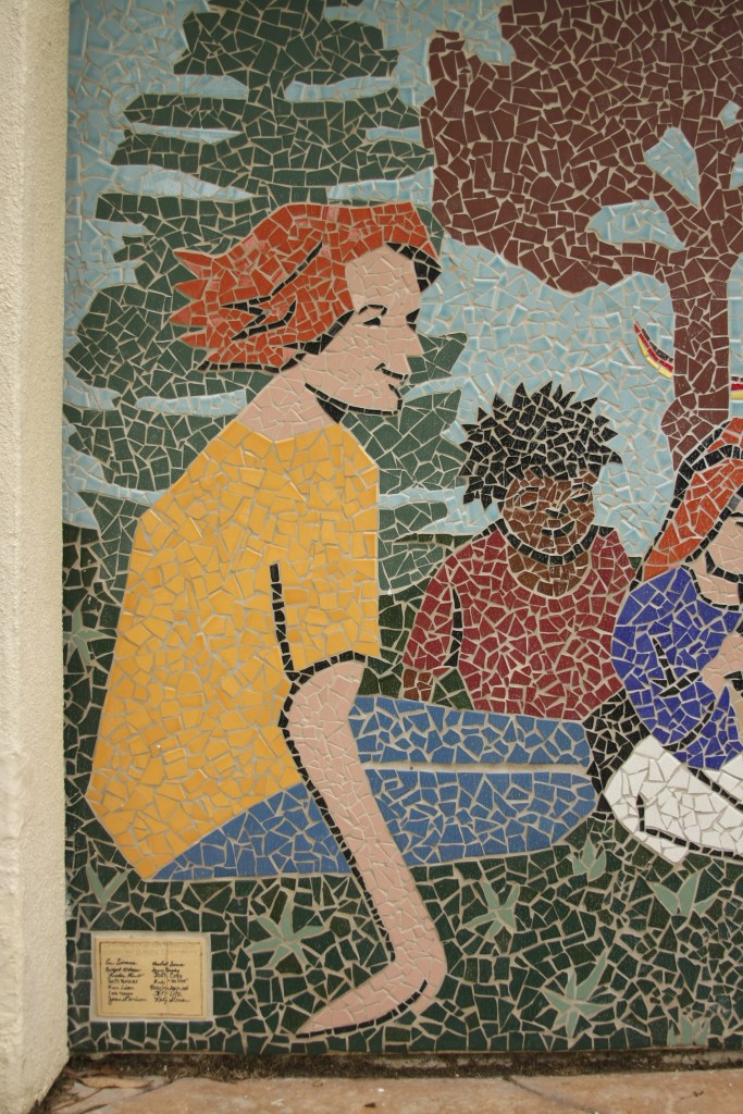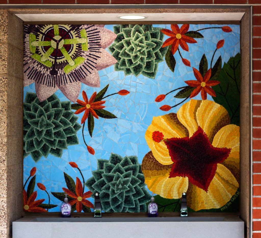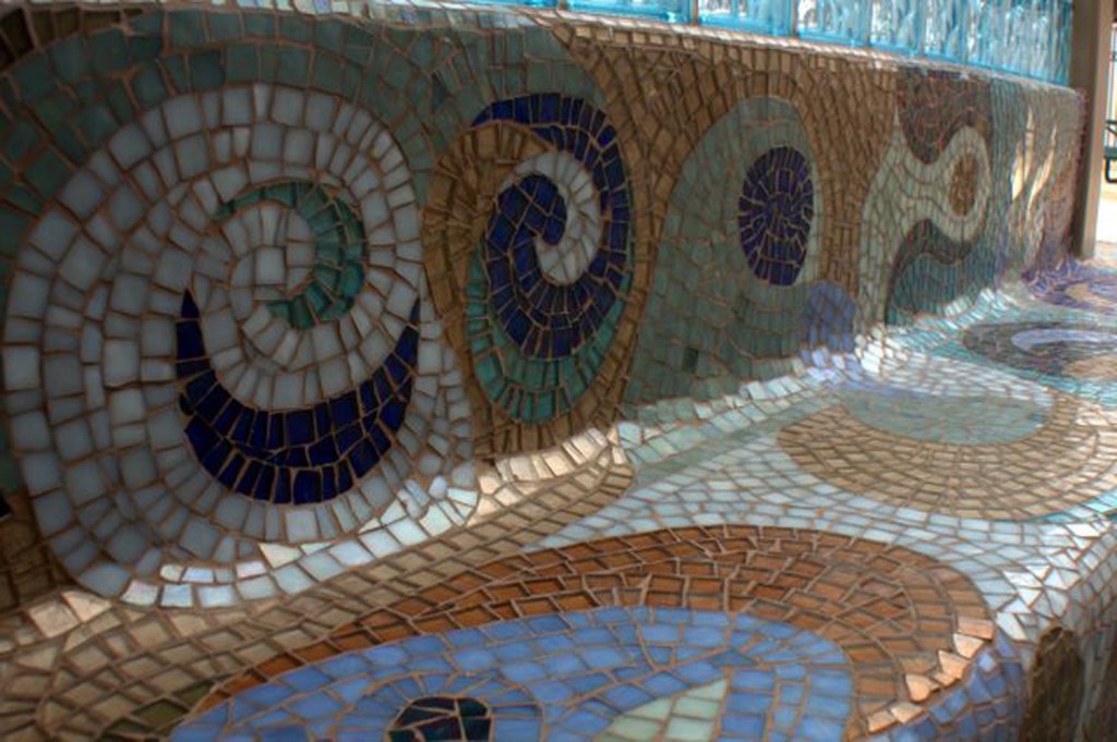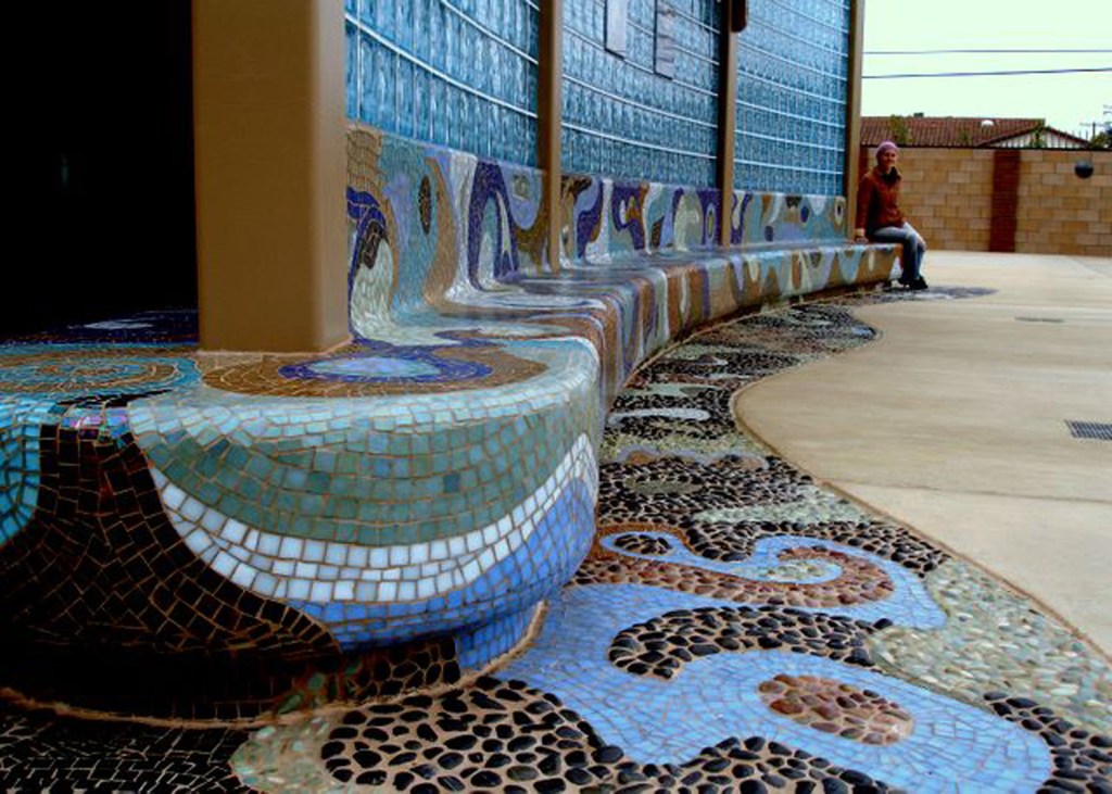 This pair of murals is made from Italian Smalti. These flank the public restrooms in a park in my home town.