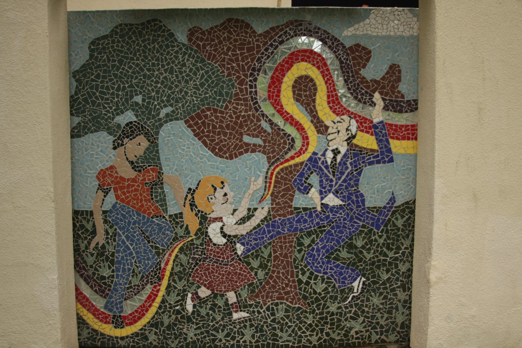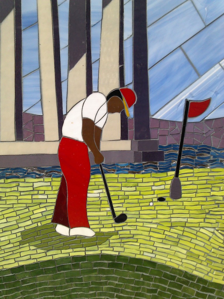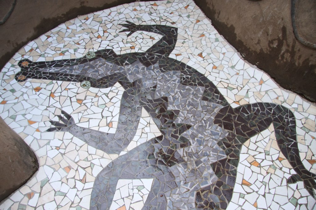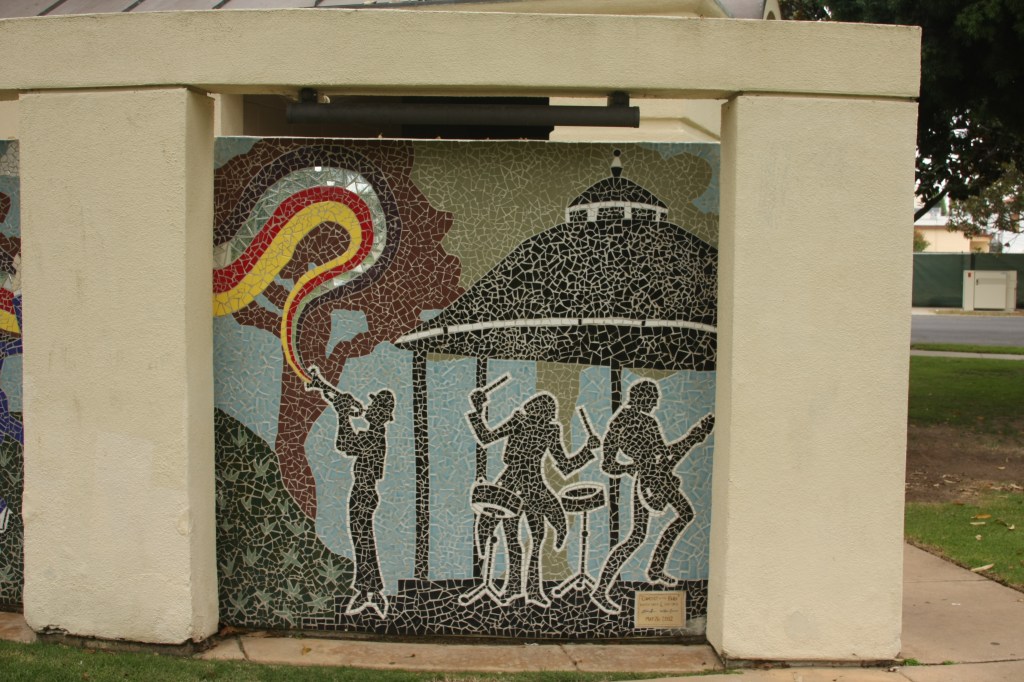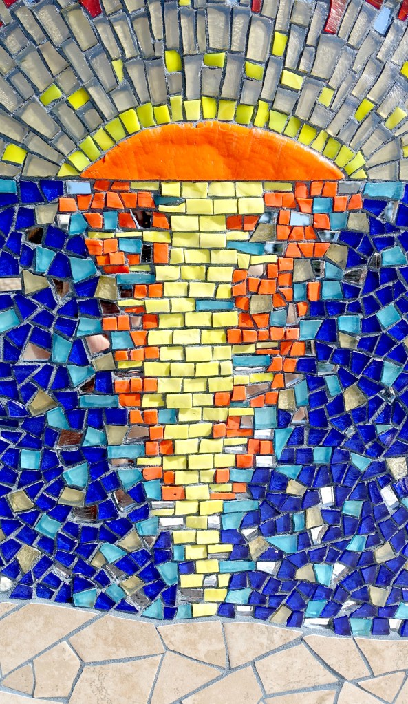 This pair of murals is made from Italian Smalti. These flank the public restrooms in a park in my home town.